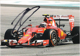 Ponadto prezetuję (bez numeru, gdyż jest w mojej kolekcji) kilka ostatnio zdobytych autografów Mistrza Świata z 2007 roku - Kimi Raikkonena (244 starty, 1296 pkt., 84 podium, 20 zwycięstw).